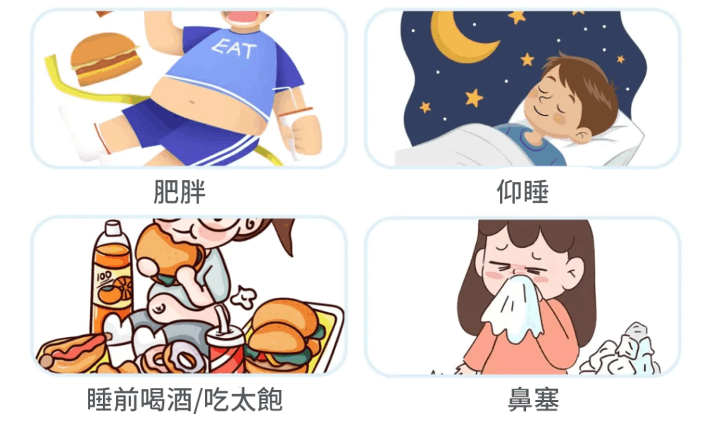 • 睡前喝酒、吃太飽的人:酒精會讓喉嚨肌肉放鬆、胃脹氣也會壓迫呼吸道;